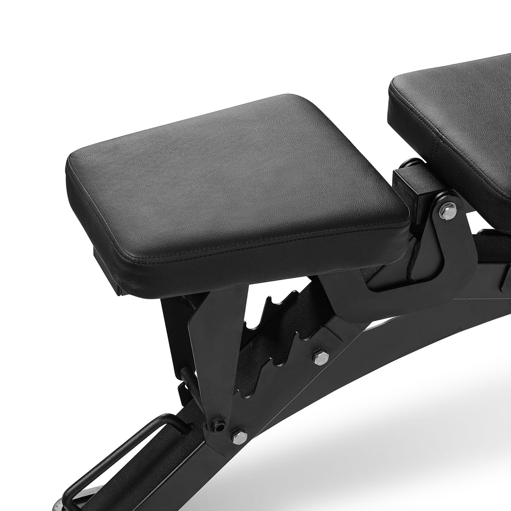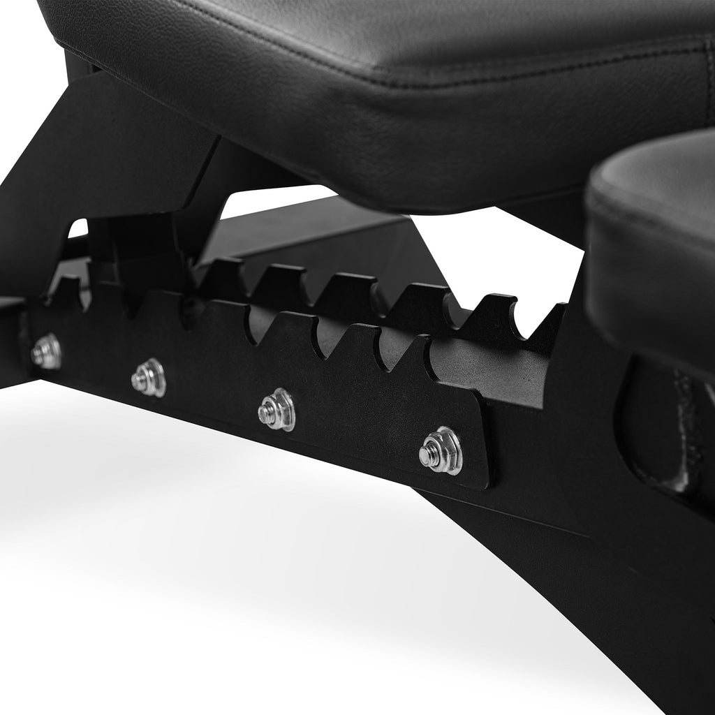 Gracias a su estructura robusta, soporta hasta 500 kg, ofreciendo la máxima seguridad en cada ejercicio. Con 9 posiciones ajustables, permite cambiar fácilmente entre plano, inclinado y declinado, garantizando un trabajo completo de todos los grupos musculares.